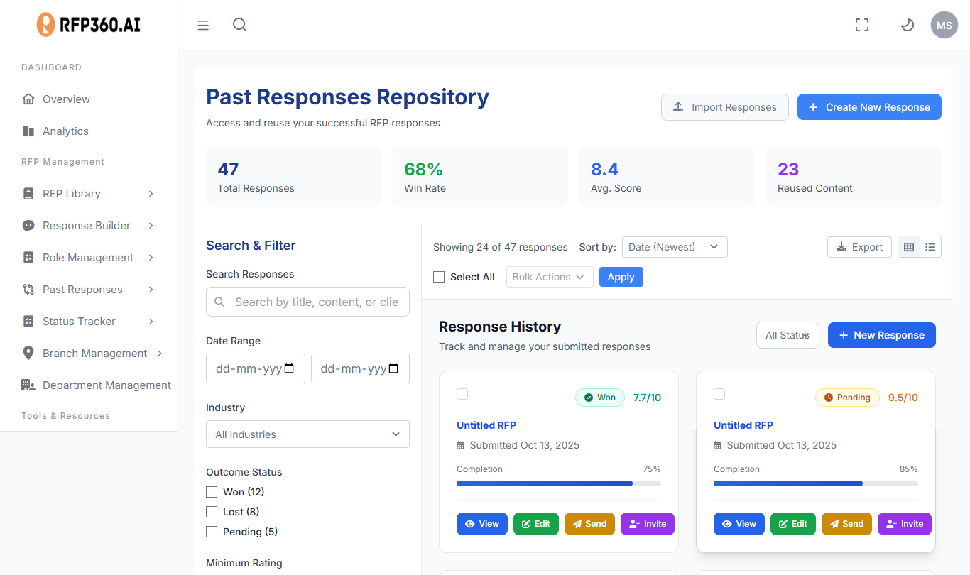 TENDER360.AI is more than a proposal tool – it’s your end-to-end competitive advantage. from discovering the right opportunities and prioritizing the best bids to drafting high-quality responses and tracking engagement, TENDER360.AI turns proposal management into a strategic growth engine.