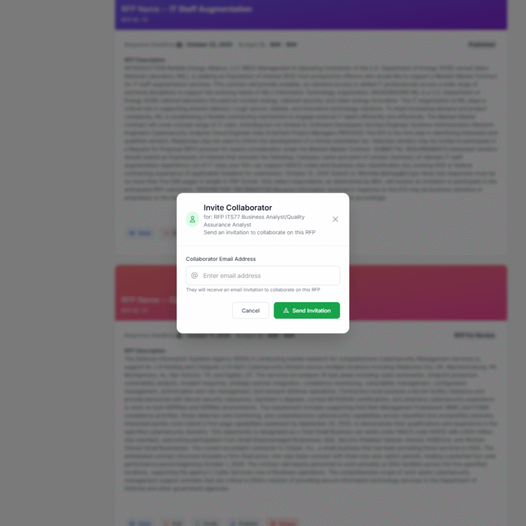 Procurement is a team effort – and TENDER360.AI is built to support collaboration at scale. Legal, technical, and financial reviewers can work together seamlessly within one environment.